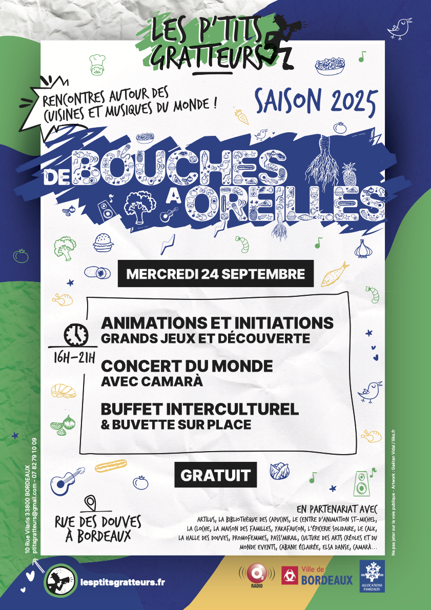 Fondée en octobre 2001, l’association Les P’tits Gratteurs, basée dans les quartiers Sud de Bordeaux, a pour objet de mener des projets socioculturels en faveur d’un développement local participatif, en lien avec les structures et institutions sociales et culturelles locales.